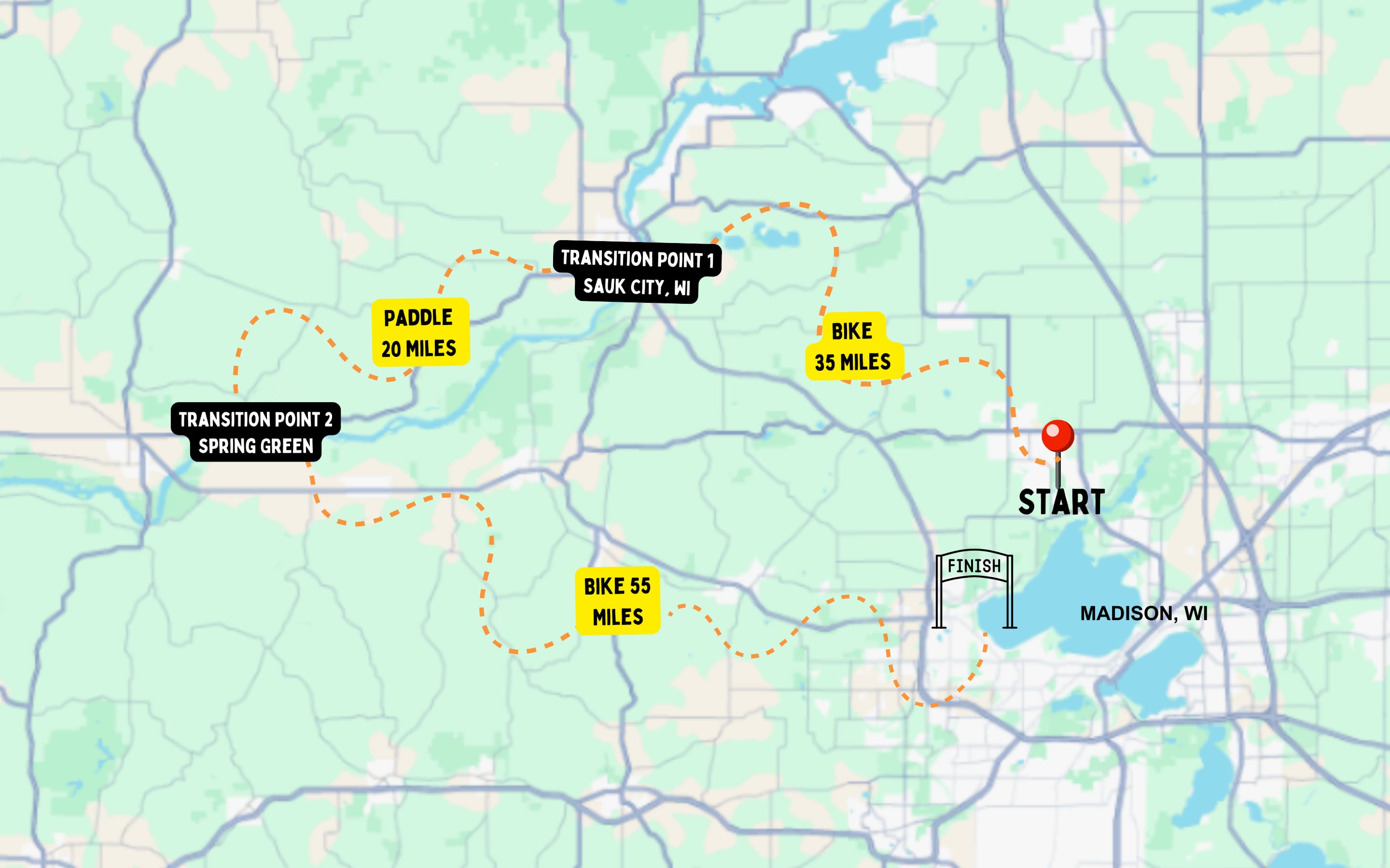 It’s an epic 3-day endurance-ish adventure challenge that involves biking, kayaking, camping & more biking in the beautiful Driftless Region of Wisconsin. It's less of a race and more about embracing the challenge and creating life long memories.